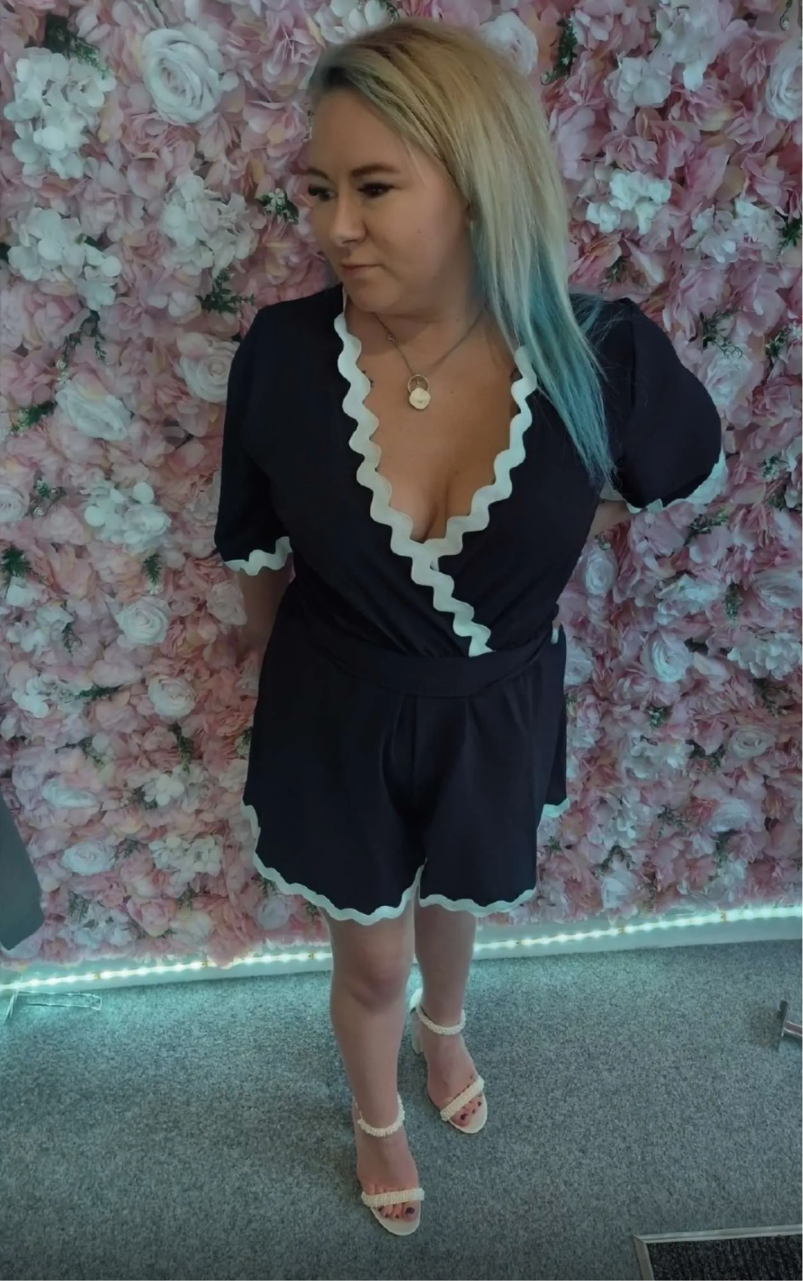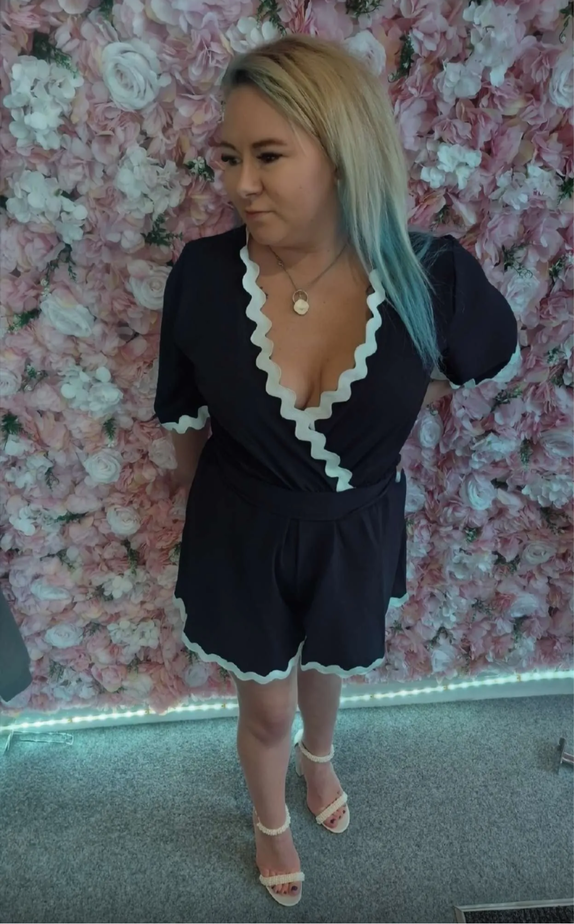Experience the perfect summer look with this versatile playsuit. Available in a variety of gorgeous colors. Featuring a beautiful 'Scallop Ric Rac' trim on the sleeves, neckline, and hem. The elasticated waistband ensures a comfortable fit, while the short sleeves adds a touch of femininity. With its soft and stretchy fabric, you'll feel effortlessly chic all day long. Complete the look with the included fabric belt fastening. Made beautifully in Italy with 100% Polyester. Just choose your size from a wide range of approx. sizes of: S (UK 8), M (UK 10), L (UK 12) and XL (UK 14) with an approx. length of: 31"(79cm). Get ready to rock this playsuit, all summer long!