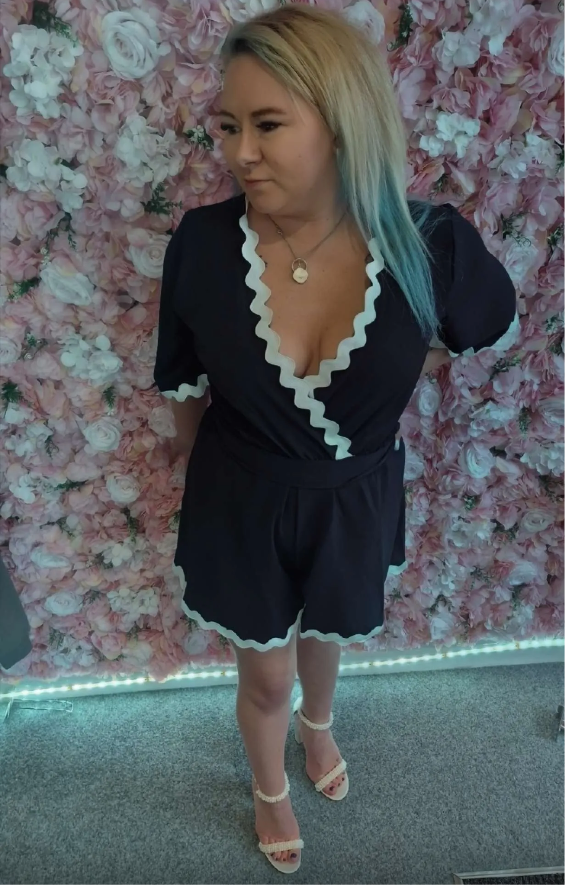 Mara Front Wrap Contrast Trim Playsuit-Navy
